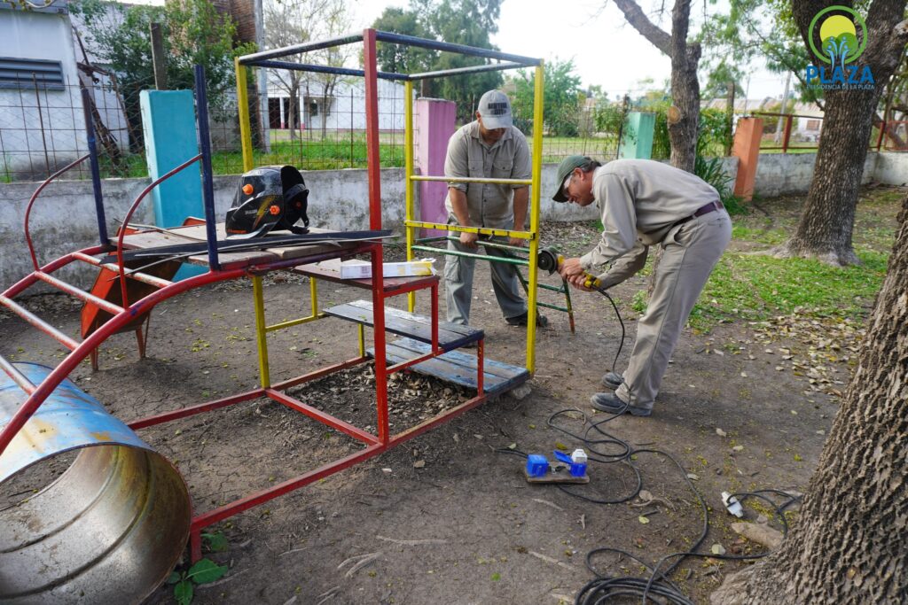 Los trabajos comenzaron semanas atrás con la reparación de juegos infantiles que presentaban deterioro, a cargo del equipo municipal de soldadores. También se realizaron arreglos en el sistema de provisión de agua, incluyendo el tanque, y actualmente se está avanzando con la pintura y puesta en valor de los juegos recreativos.