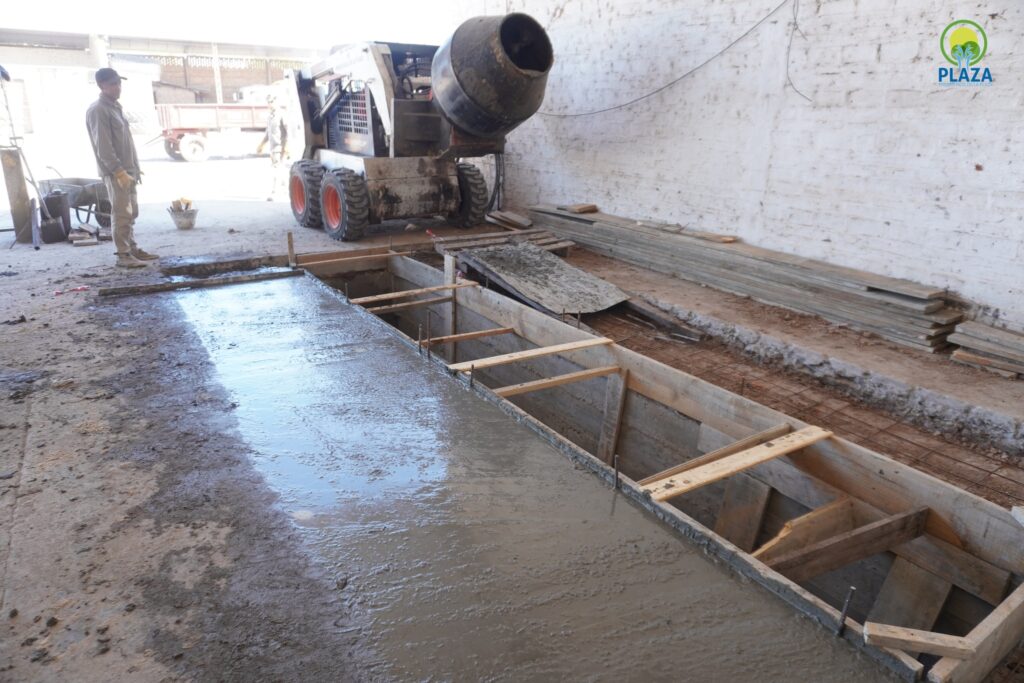 En el corralón municipal de Plaza, avanza la construcción de una fosa especial destinada al equipo de mecánicos que se encarga del mantenimiento y reparación de toda la flota de vehículos, maquinarias y camiones del Municipio