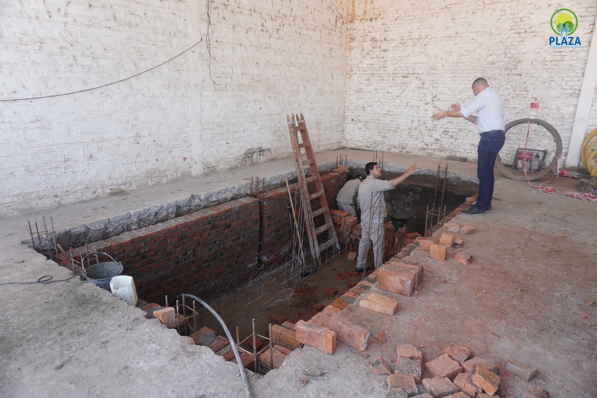 En el corralón municipal de Plaza, avanza la construcción de una fosa especial destinada al equipo de mecánicos que se encarga del mantenimiento y reparación de toda la flota de vehículos, maquinarias y camiones del Municipio