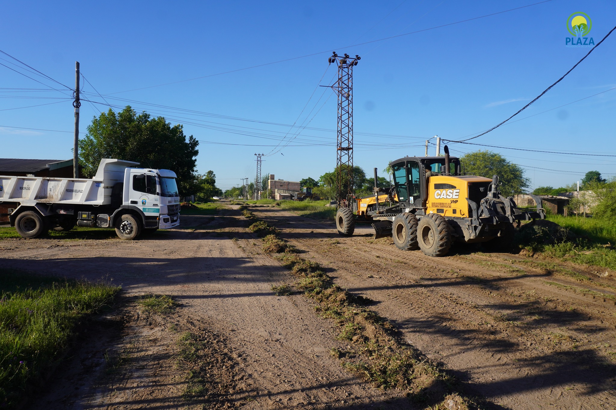 El equipo del Corralón Municipal de Presidencia de la Plaza, con retroexcavadoras, motoniveladora y camiones, continúa realizando un amplio repaso y arreglo de calles .