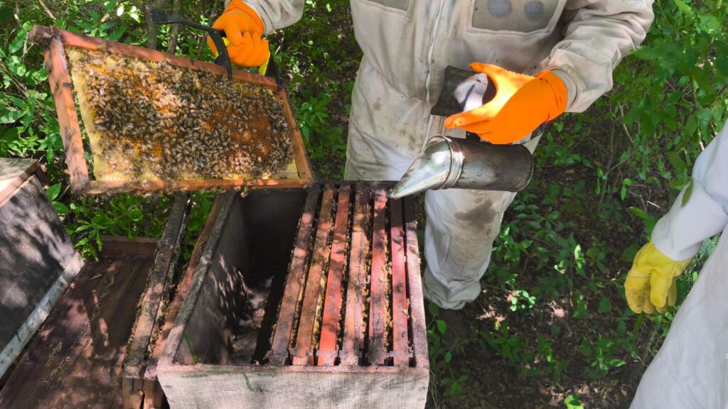 La segunda etapa fue dirigida por el equipo del Programa Nacional de Sanidad Apícola del SENASA, acompañado por el coordinador técnico provincial. Allí, los asistentes debieron demostrar en terreno su capacidad para realizar inspecciones sanitarias en colmenas, siguiendo los protocolos oficiales del organismo sanitario nacional.
