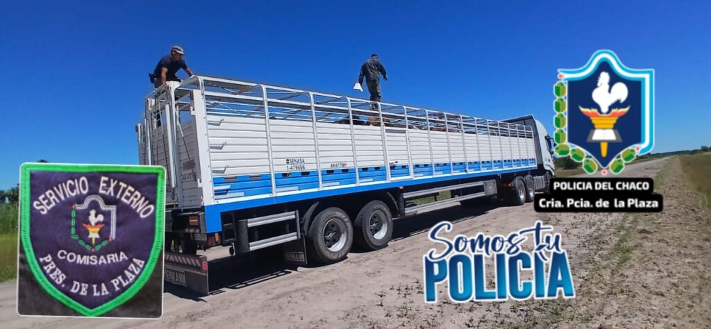 Fecha y hora indicada Personal de Comisaría Presidencia de la Plaza, al realizar control vehicular e identificación de personas en Ruta Prov. 7 a 10 km de intercesión con Nacional N° 16 Hacia el Sur, conforme directiva de la superioridad, procede detener el paso de Camión conducido por masculino de 26 años, domicilio en de esta ciudad, trasportando animales vacunos.