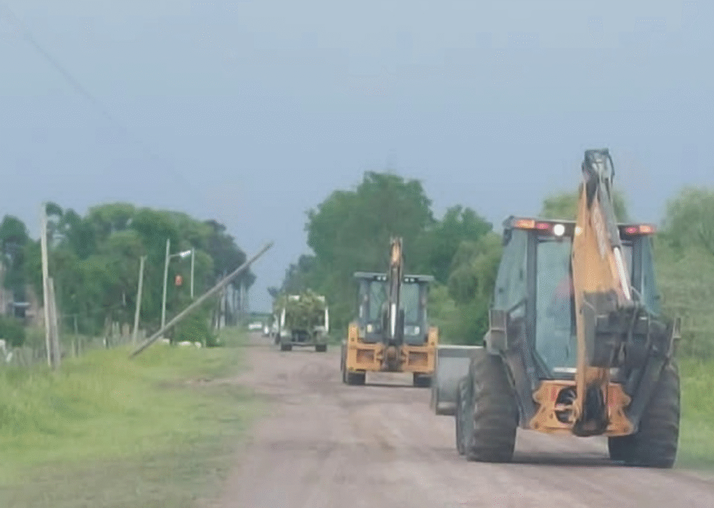 Hoy domingo el equipo de trabajo del corralón municipal se encuentra realizando tareas de limpieza y liberación del camino al cementerio, luego de que la zona se viera afectada por la caída de varios árboles debido a los fuertes vientos de la reciente tormenta.