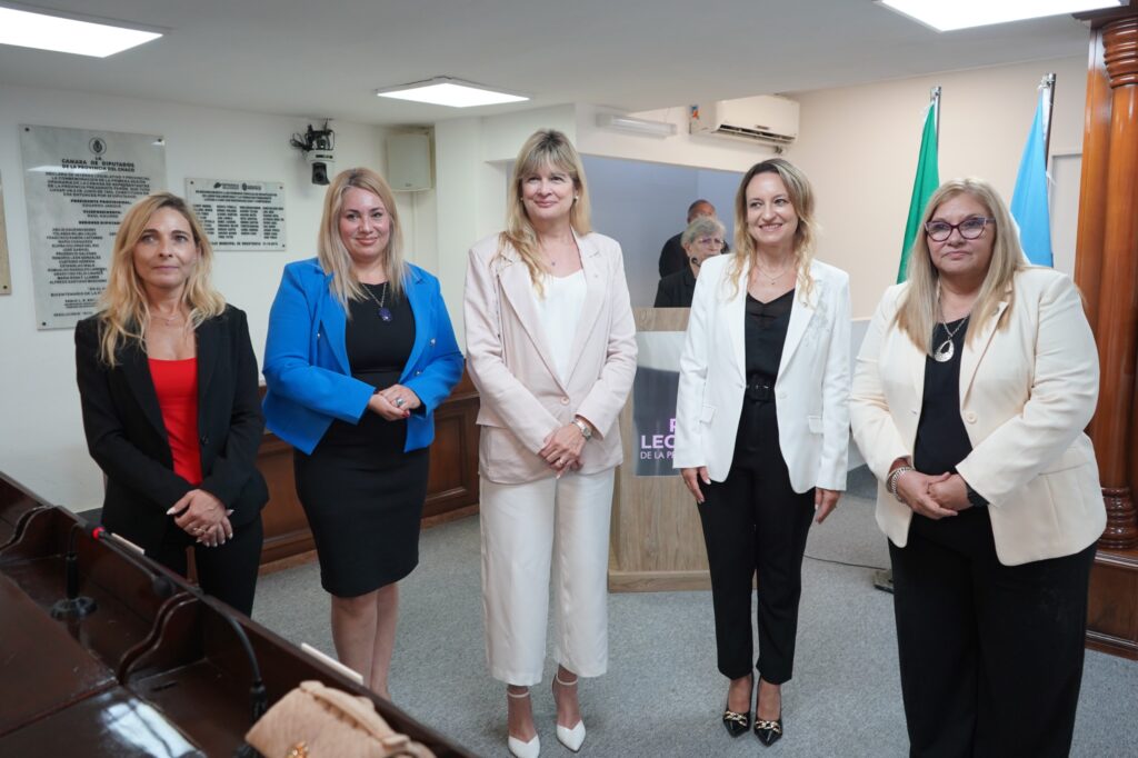 La entrega de certificados se realizó en el Recinto de Sesiones “Deolindo Felipe Bittel” y estuvo encabezada por la presidente de la Cámara, Carmen Delgado; la vicerrectora académica de la Universidad de la Cuenca del Plata, Marcela Medina; la decana de la Facultad de Ingeniería, Tecnología y Arquitectura, Juliana Martina Perduca; la coordinadora académica intersedes de dicha facultad, Cynthia Elizabeth del Carmen Mujica; la coordinadora académica intersedes de la Facultad de Ciencias Sociales y Humanidades, Melina Carla Meneses; y la directora de Prensa y Difusión del Poder Legislativo, Lucía Gavello.