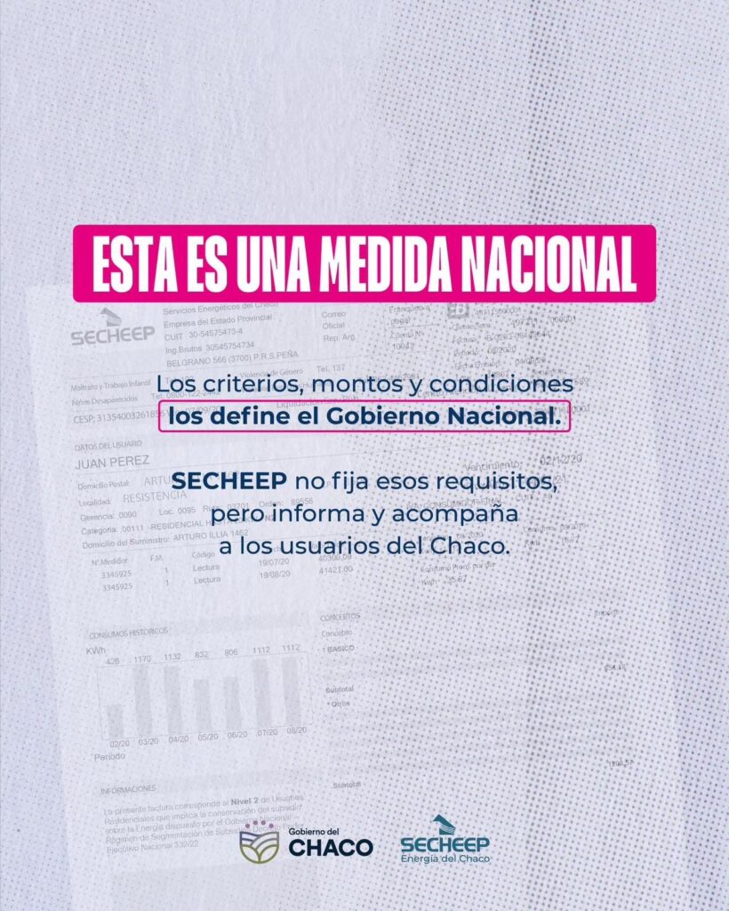 Ante la puesta en marcha del nuevo esquema de subsidios energéticos definido por el Gobierno Nacional, desde SECHEEP se informa a los usuarios del Chaco sobre los principales alcances de la medida y cómo impacta en la facturación del servicio eléctrico.