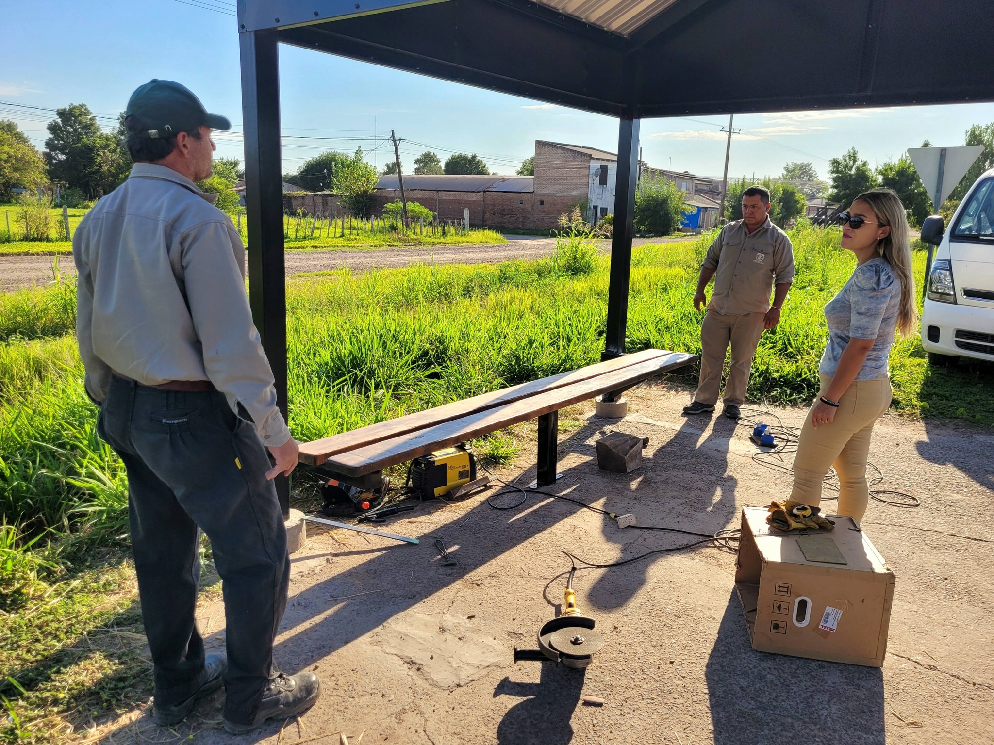 Con el trabajo del personal del Corralón Municipal, se llevó a cabo la colocación de un banco en la garita ubicada sobre Ruta Nacional 16.