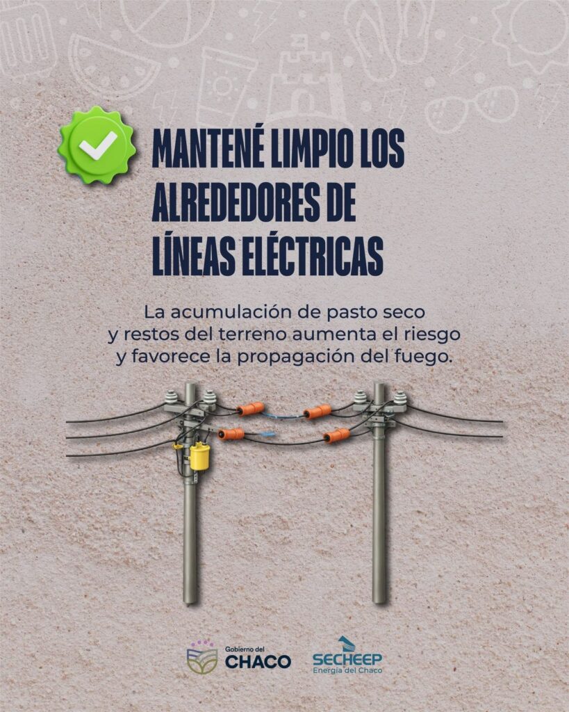 Desde la empresa advirtieron que la quema de pastizales, residuos o basura en zonas cercanas a líneas eléctricas representa un riesgo grave, ya que los incendios pueden provocar daños en transformadores, cables y postes, generando cortes del suministro que afectan a miles de chaqueños.