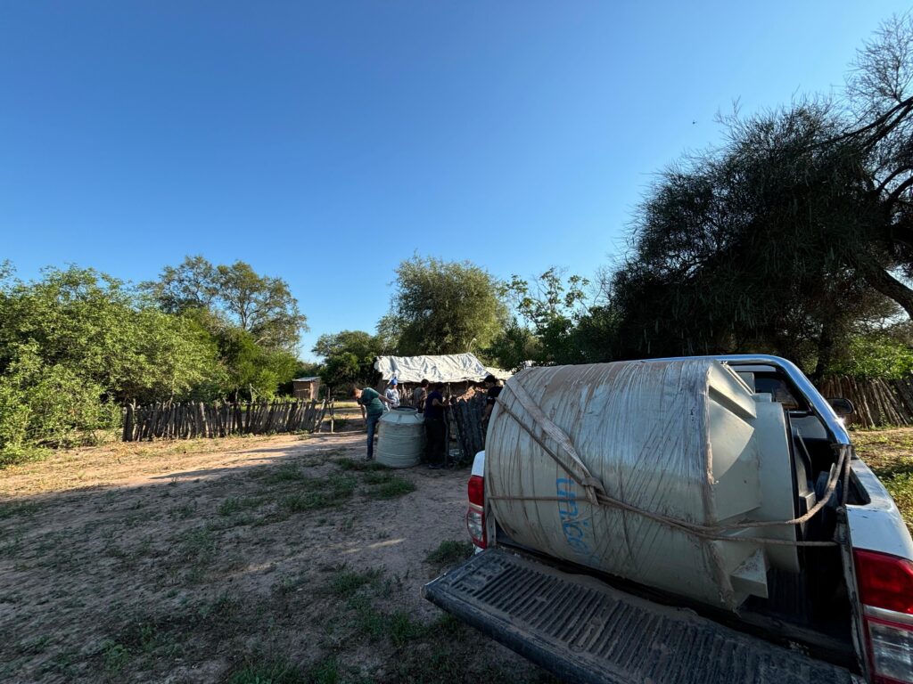 El programa provincial social y articulado Ñachec, dependiente del Ministerio de Desarrollo Humano, continúa con la entrega de tanques cisterna en distintas comunidades rurales de Miraflores, en el marco del convenio que fue firmado con UNICEF, con el objetivo de mejorar el acceso al agua segura para las familias.