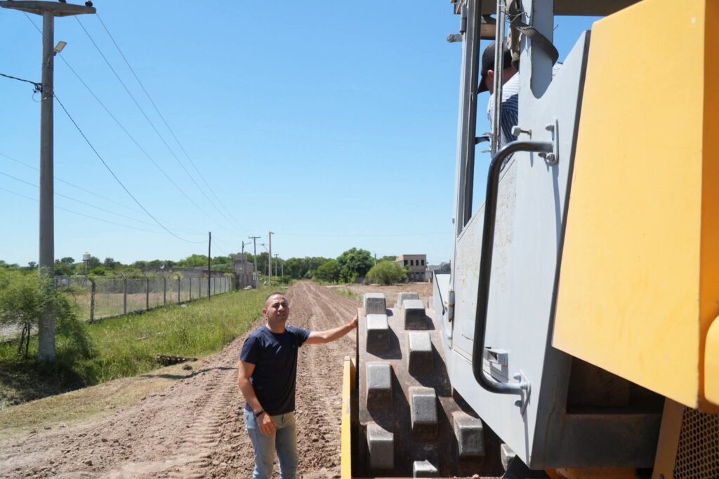 El intendente de la localidad, Lic. Diego Bernachea, recorrió la obra de enripiado total de la calle Sarmiento, uno de los principales corredores viales de la ciudad, fundamental para la conexión entre distintos sectores y de gran tránsito diario.