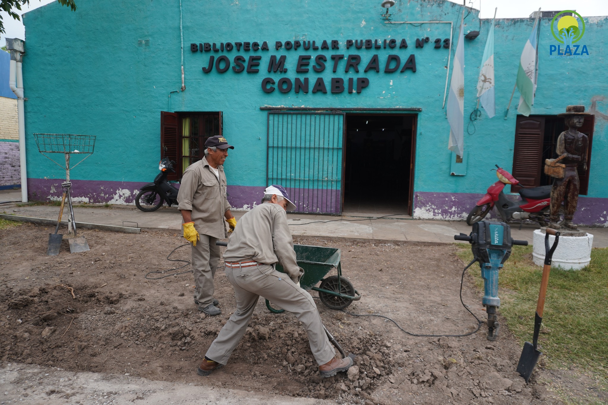 El Municipio de Presidencia de la Plaza continúa trabajando para mejorar los espacios públicos de la comunidad. En esta oportunidad, avanzan los trabajos de mejoras en el acceso a la Biblioteca Popular Pública Nº 23 “José Manuel Estrada”, un lugar muy concurrido por vecinos, estudiantes y lectores que a diario acuden en busca de materiales y espacios de estudio.