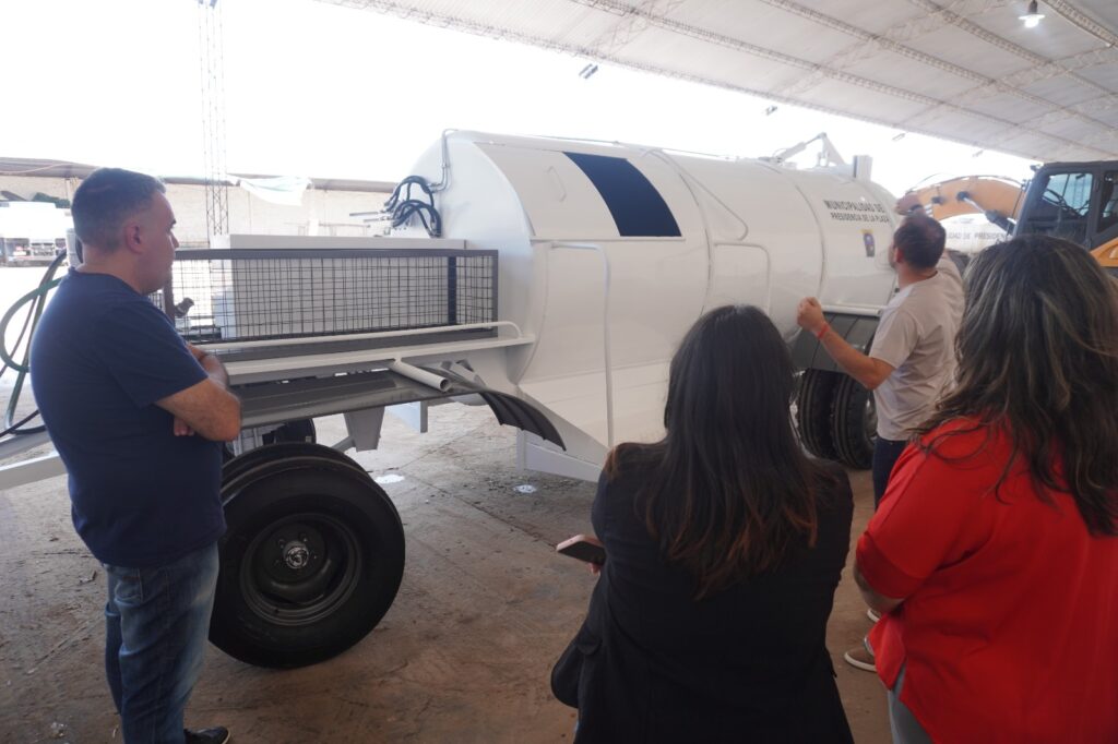Durante la presentación, el intendente estuvo acompañado por los concejales Federico Lombardo, Claudia Fortini, Hugo Lombardo y Marisel Gauna; la secretaria de Gobierno, Dra. Florencia Biscay; la secretaria general, Prof. Rosana Gómez; y el encargado del corralón municipal, Diego Teruel.