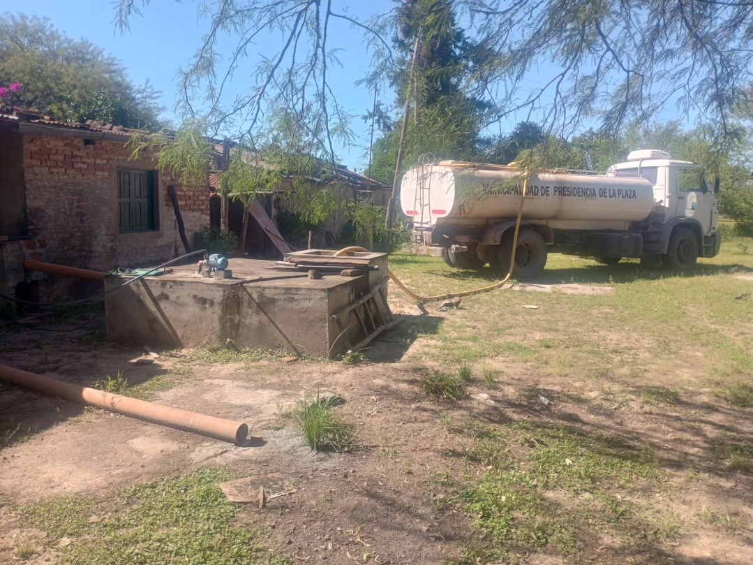 La Municipalidad de Presidencia de la Plaza continúa brindando asistencia con agua en distintos puntos de la zona periurbana y sectores rurales de la ciudad, acompañando a las familias que más lo necesitan.