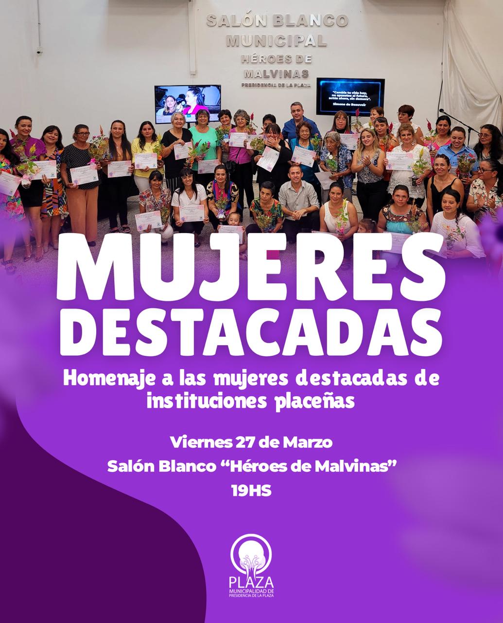 El Municipio de Presidencia de la Plaza invita a la comunidad a participar de un emotivo homenaje a las mujeres destacadas de nuestras instituciones placeñas
