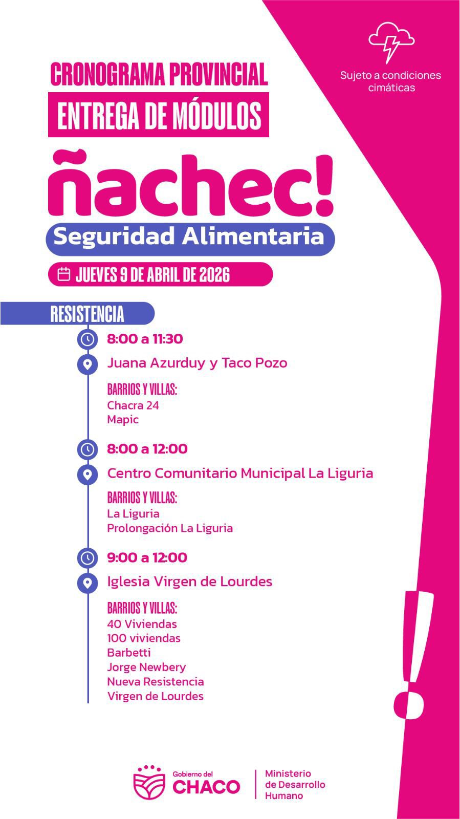 ÑACHEC: CRONOGRAMA DE ENTREGA DE MÓDULOS ALIMENTARIOS EN RESISTENCIA